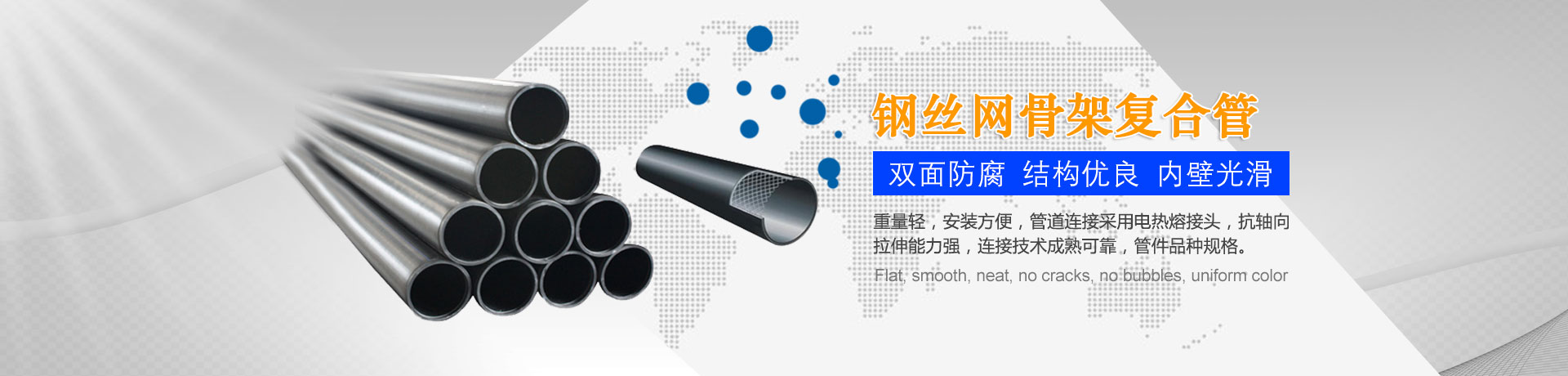 我們主要生產(chǎn)銷售:鋼絲網(wǎng)骨架復(fù)合管、鋼絲網(wǎng)骨架聚乙烯復(fù)合管、孔網(wǎng)鋼帶聚乙烯復(fù)合管、鋼骨架聚乙烯塑料復(fù)合管、電熔管件、HDPE中空壁纏繞管、HDPE內(nèi)肋增強螺旋波紋管、HDPE結(jié)構(gòu)壁增強B型管等一系列產(chǎn)品。復(fù)合管以其特有的防腐蝕、耐磨、耐高溫、抗嚴(yán)寒、耐壓、抗蠕變、穩(wěn)定性好、安裝方便等特點,逐步取代各類金屬管件和塑料管件,被應(yīng)用于消防、石油、化工、供水、采礦、海水輸送等領(lǐng)域...